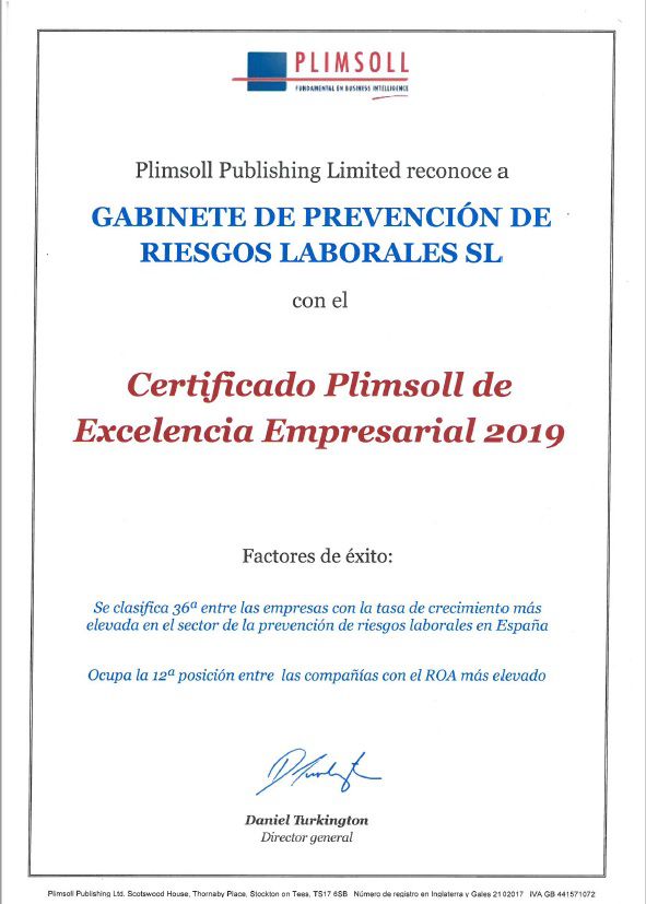 Desde el Grupo Esoc queremos dar las gracias a Plimsoll Publishing y expresar nuestra satisfacción por este reconocimiento a nuestro trabajo en Prevención de Riesgos Laborales.