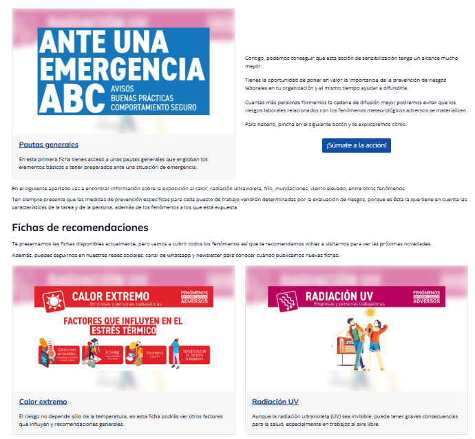 Se trata de un nuevo espacio web con materiales descargables para concienciar a las empresas y personas trabajadoras y así combatir los peligros relacionados con el calor extremo, las radiaciones solares y los agentes transmisores de enfermedades como mosquitos y garrapatas.